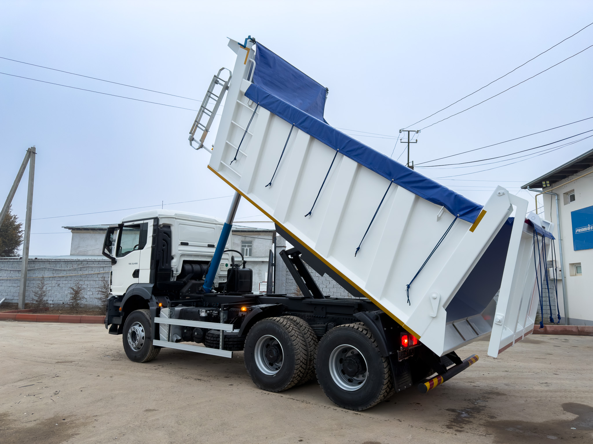 Автомобиль-самосвал с объёмом кузова 16 куб. м и задней разгрузкой, выполненный на базе шасси TGS 33.400 6×4 BB CH, предназначен для перевозки инертных материалов: грунта, щебня, песка, гравия, асфальта, бетона, за исключением крупнокусковых материалов.