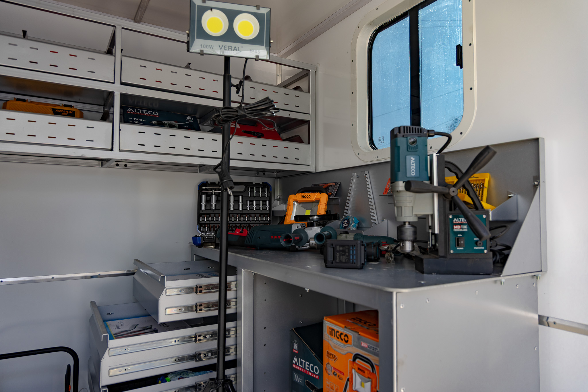Выполнение различных работ в случае аварий и чрезвычайных ситуаций, а также транспортировка бригады рабочих с необходимыми материалами, деталями и инструментом к месту работ. Мастерская оснащена специальной техникой и оборудованием, которые позволяют использовать её для решения задач, выполняемых АДС.