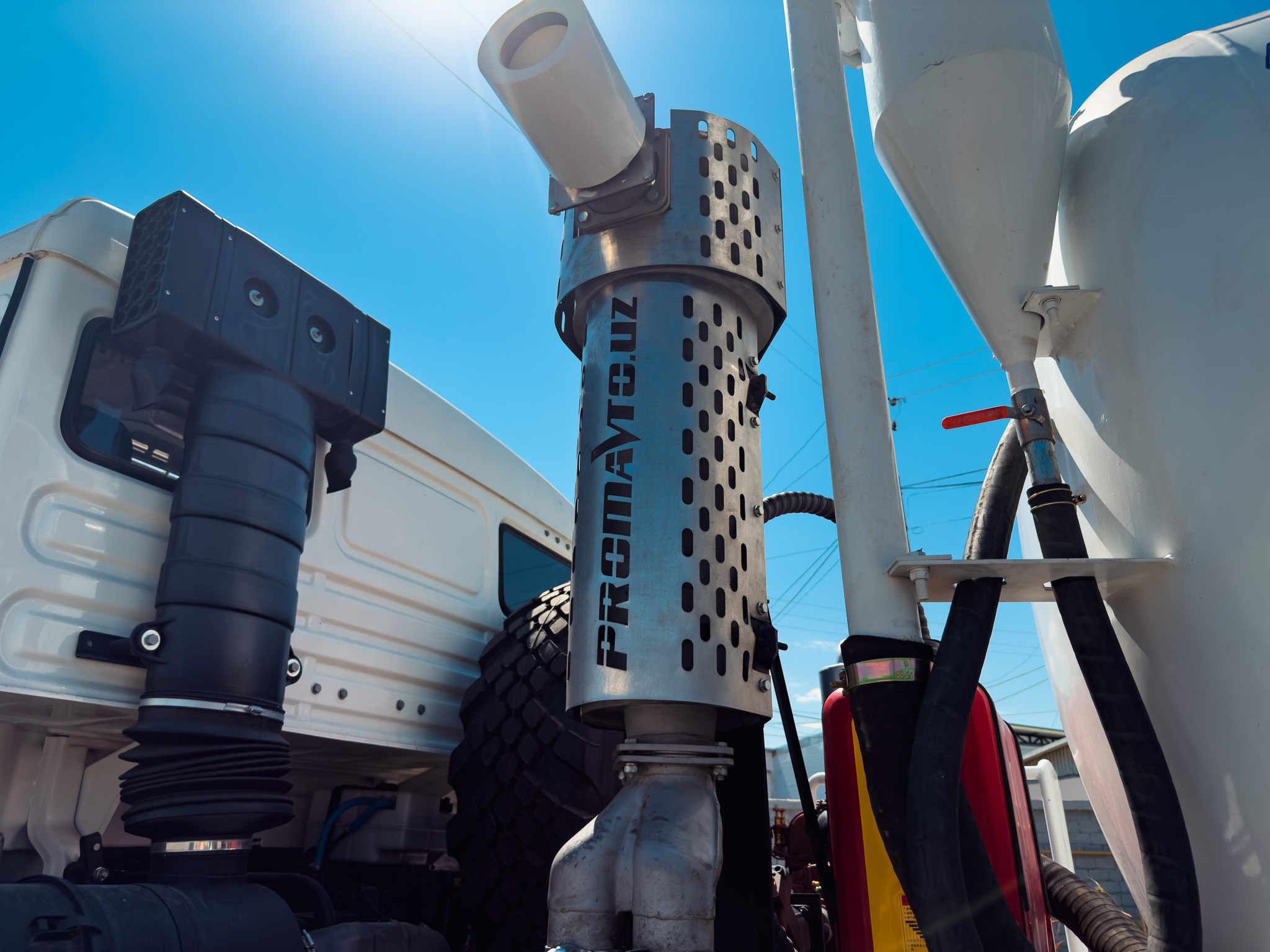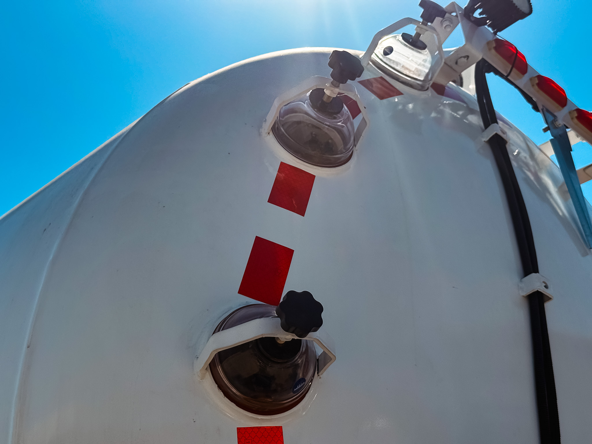 Цистерна Ёмкость 10м3 из стального листа толщиной 5мм, усиленная рёбрами жёсткости. Установлен гидроподъём и 2 волнореза, лестница для подъема на площадку обслуживания горловины. Площадка из перфорированного оцинкованного листа с противоскользящим эффектом, со складными поручнями. Материал исполнения цистерны: Нержавеющая сталь AISI321L.